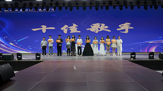 經(jīng)過激烈角逐,該校喻新凱副校長宣布“校園十佳歌手”和“優(yōu)秀歌手獎”獲獎名單。獲獎選手在歡呼聲中登臺領(lǐng)獎,校領(lǐng)導(dǎo)為其頒發(fā)獎杯和榮譽證書并合影留念,掌聲與燈光共同為這些追夢學(xué)子加冕。