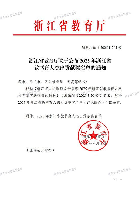 據悉,浙江省教書育人杰出貢獻獎每四年評選一次,包括省杰出教師獎和省教學成果獎兩個項目,經各地各單位申報、專家評審、公開公示等程序,確定2025年浙江省教書育人杰出貢獻獎最終名單。