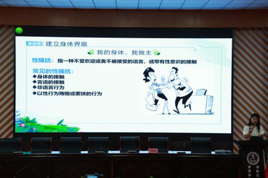 最后,孫醫(yī)生以一名醫(yī)者和長(zhǎng)者的身份,鄭重地談到了“自我保護(hù)”的重要性。她從身體界限、網(wǎng)絡(luò)安全、心理防護(hù)等多個(gè)維度,給出了具體而深刻的建議。她強(qiáng)調(diào):“真正的美麗,源于自信、自愛(ài)和自尊。你們的身體和心靈都無(wú)比珍貴,學(xué)會(huì)勇敢地說(shuō)‘不’,是成長(zhǎng)中最重要的一課。”這番話語(yǔ)重心長(zhǎng),為同學(xué)們敲響了安全的警鐘,也注入了堅(jiān)定的力量。