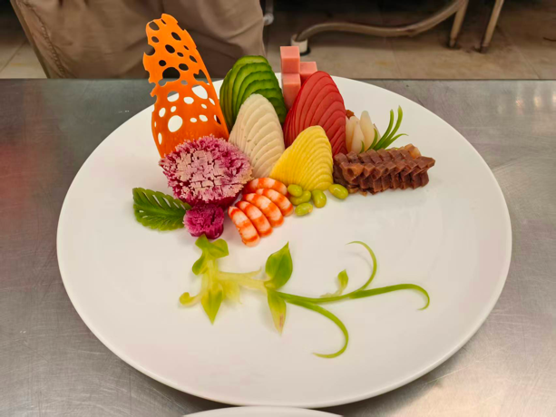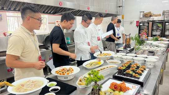 煙火氣里的匠心魅力技能操作環(huán)節(jié)堪稱“神仙打架”,選手們要在120分鐘內(nèi)完成各種冷拼、規(guī)定地方名菜、特色食材創(chuàng)新菜三大挑戰(zhàn),每一道工序都是對(duì)刀工、調(diào)味、火候與創(chuàng)意的極致考驗(yàn)!比賽現(xiàn)場(chǎng),選手們精神飽滿、技藝精湛:有人在冷拼環(huán)節(jié)刀工如飛,將蘿卜雕成栩栩如生的花鳥;有人在熱炒環(huán)節(jié)火力全開,顛鍋翻勺間香氣四溢;還有人在創(chuàng)新菜環(huán)節(jié)腦洞大開,讓平凡食材蛻變成視覺與味覺的雙重驚喜。評(píng)委團(tuán)則從色澤、味感、成形、質(zhì)感、衛(wèi)生安全等多維度嚴(yán)格打分,每一道作品都要經(jīng)過(guò)“火眼金睛”的挑剔檢驗(yàn),最終的優(yōu)勝者,無(wú)疑是廚藝與匠心的雙重王者!
