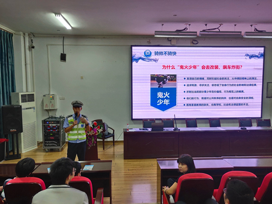 為切實增強學生交通安全意識,營造安全文明的校園周邊環(huán)境,9月23日下午,柳市職業(yè)技術(shù)學校邀請柳市交警中隊來校,為學生構(gòu)建了一堂深入淺出、警教結(jié)合的立體化安全教育課堂。