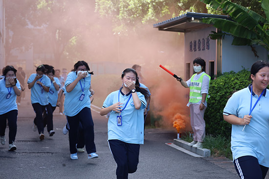 隨著模擬火災(zāi)警報(bào)聲響起,演練正式開(kāi)始。高一新生在教官與班主任的指引下,迅速用濕毛巾捂住口鼻,沿著預(yù)設(shè)逃生路線快速向操場(chǎng)指定安全區(qū)域疏散。整個(gè)過(guò)程中,同學(xué)們反應(yīng)迅速、秩序井然,未出現(xiàn)擁擠、推搡現(xiàn)象,到場(chǎng)后各班迅速清點(diǎn)人數(shù)并向校安辦匯報(bào),疏散率達(dá) 100%,演練整體達(dá)到預(yù)期效果。?