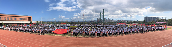 莊嚴的升國旗儀式,全場師生肅立,向國旗行注目禮。