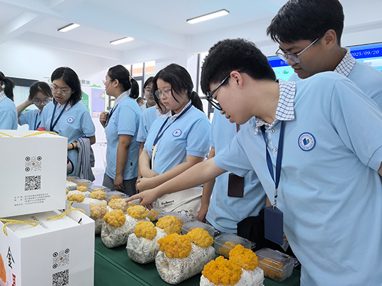 除農(nóng)業(yè)生產(chǎn)環(huán)節(jié)外,學(xué)生們還參觀了金耳菌培育室。這些新型農(nóng)業(yè)品種和培育技術(shù)不僅展示了未來農(nóng)業(yè)的發(fā)展?jié)摿?,也讓大家直觀了解到科技如何提升現(xiàn)代農(nóng)業(yè)的產(chǎn)量與效率。