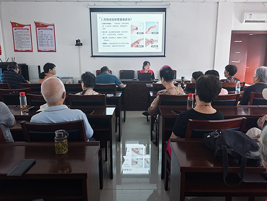 課程互動環(huán)節(jié),居民們踴躍提問,“朱醫(yī)生,我體檢發(fā)現(xiàn)膽固醇偏高,要不要吃藥?”“更年期月經(jīng)不調(diào),是不是內(nèi)分泌問題?” 朱云老師逐一耐心解答,針對居民的個體情況給出個性化建議,還現(xiàn)場演示了簡單的血脂自查注意事項,讓居民既學(xué)到知識,又掌握實用技能。