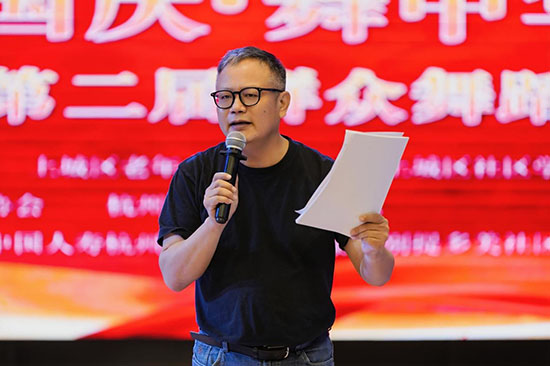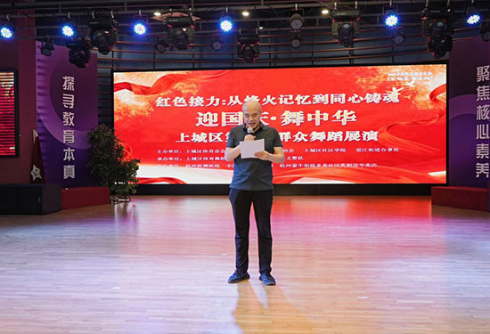 活動在莊嚴(yán)的國歌聲中拉開序幕。主持人阿民師傅、王麗老師開場后,區(qū)文廣旅體局四級調(diào)研員黎驕為展演致辭。他充分肯定了群眾舞蹈在豐富基層文化生活中的重要作用,并寄語廣大文藝愛好者繼續(xù)用藝術(shù)講好上城故事、傳遞時代強(qiáng)音。