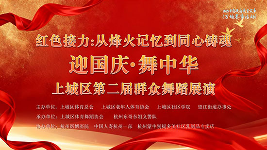 在中華人民共和國成立76周年到來之際,紅色接力:從烽火記憶到同心鑄魂“迎國慶 舞中華”上城區(qū)第二屆群眾舞蹈展演圓滿落幕。此次展演由上城區(qū)體育總會、上城區(qū)老年人體育協(xié)會、望江街道辦事處、上城區(qū)社區(qū)學(xué)院主辦,上城區(qū)體育舞蹈協(xié)會、杭州東哥東姐義氣警隊(duì)承辦,杭州醫(yī)博醫(yī)院、中國人壽杭州一部、蒙牛別提多美乳制品協(xié)辦。上城區(qū)文化廣電旅體局四級調(diào)研員黎驕,上城區(qū)望江街道黨工委委員熊侃,上城區(qū)社區(qū)學(xué)院書記潘國偉,全國勞動模范史文斌等領(lǐng)導(dǎo)嘉賓出席。