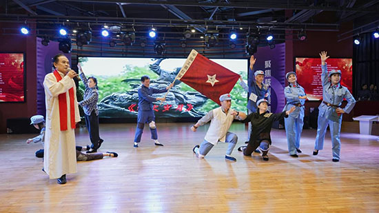 整場展演以“紅色接力”為主線,精心設(shè)計(jì)三大篇章。第一篇章“烽火記憶傳承”以《烽火歲月 松花江上》《十送紅軍》《紅色記憶》等節(jié)目,帶領(lǐng)觀眾重回那段艱苦卓絕的歲月,感受革命先輩的堅(jiān)定信念與無私奉獻(xiàn)。