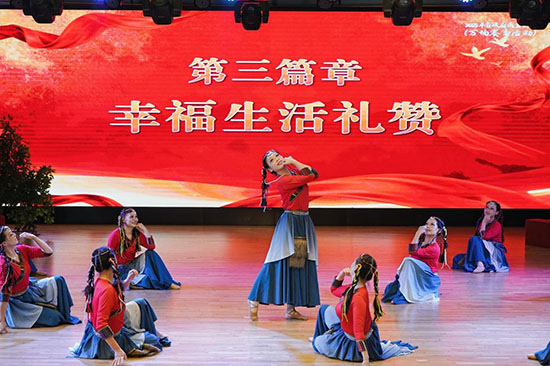 第二篇章“時代發(fā)展見證”以《蘋果香》《喝彩巾幗》《親吻祖國》等節(jié)目,展現(xiàn)各族人民團(tuán)結(jié)奮進(jìn)、共建家園的精神風(fēng)貌,彰顯新時代的生機(jī)與活力。