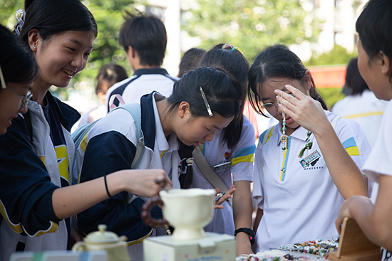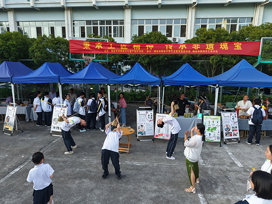 “叮鈴鈴——”,10月10日下午3時(shí),瑞安市職業(yè)中等專業(yè)教育集團(tuán)學(xué)校(以下簡稱瑞職集團(tuán)校)的放學(xué)鈴聲剛落,原本安靜的校園小廣場瞬間熱鬧起來。同學(xué)們快步匯聚于此,目光被廣場兩側(cè)琳瑯滿目的攤位吸引——一場兼具觀賞性與互動(dòng)性的“民間工藝盛宴”暨非遺文化進(jìn)校園活動(dòng)正拉開帷幕,用指尖上的技藝為師生們帶來沉浸式文化體驗(yàn)。