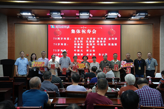 活動伊始,校工會主席朱忠華向現(xiàn)場全體退休教師致以誠摯的節(jié)日問候,并特別向6對金婚銀婚夫婦以及18位壽星表達(dá)了衷心祝賀,祝福大家健康長壽、家庭幸福。