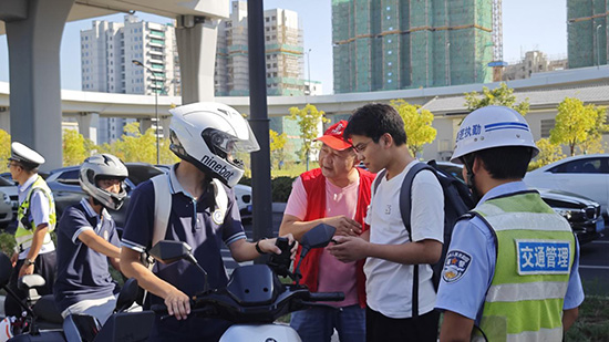 學(xué)生上下學(xué)高峰時(shí)段,聯(lián)合工作組準(zhǔn)時(shí)在各重點(diǎn)路段值守。在學(xué)校門口十字路口,交警同志對(duì)騎行電動(dòng)車未佩戴頭盔的學(xué)生逐一攔停,并結(jié)合近期本地未成年人騎行事故案例,用“身邊事”警示“身邊人”。同時(shí),交警現(xiàn)場演示正確佩戴頭盔的方法,提醒學(xué)生必須年滿16周歲方可騎行電動(dòng)車,騎行時(shí)不載人、不闖紅燈、不逆行,為平安出行筑起第一道防線。校安管處工作人員則同步記錄學(xué)生信息,后續(xù)通過班主任聯(lián)系家長,提醒家長加強(qiáng)日常監(jiān)護(hù)。