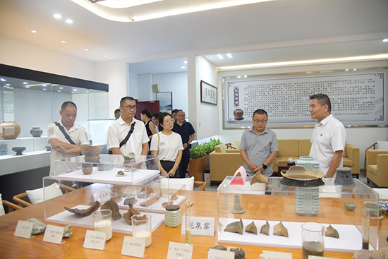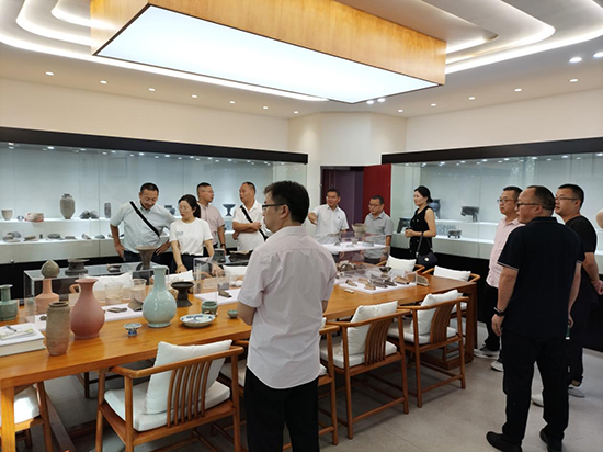 上午9:30,蒼溪職中交流團準時抵達,在良渚職高團隊的熱情迎接下,雙方首先于臺階處合影留念,定格兩校協(xié)作交流的重要瞬間。隨后,交流團先后參觀了學校陶藝館、創(chuàng)新創(chuàng)業(yè)教室、校園文化走廊、職業(yè)體驗中心及相關(guān)專業(yè)實訓場室,實地了解良渚職高在校園文化打造、實訓場地建設(shè)、設(shè)備配置與教學實踐融合方面的經(jīng)驗做法。整潔規(guī)范的實訓環(huán)境、先進的教學設(shè)備與特色的黑陶工藝等,給考察交流團留下深刻印象,雙方不時駐足交流,探討東西協(xié)作的創(chuàng)新路徑。