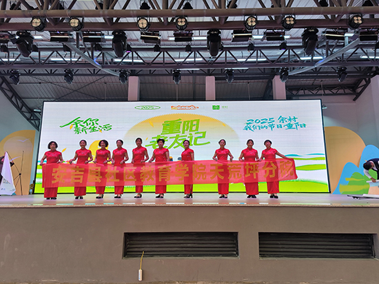 天荒坪成校旗袍秀班首登重陽(yáng)舞臺(tái),銀齡風(fēng)姿點(diǎn)亮余村匯演