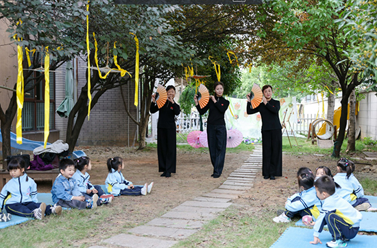 10月28日上午9時(shí),活動(dòng)正式拉開帷幕。開場環(huán)節(jié)“萌力全開VS酷炫銀發(fā)”精彩紛呈,大一班幼兒手持重陽主題物品自信走秀,稚嫩步伐盡顯活力;浙江老年開放大學(xué)諸暨學(xué)院的學(xué)員們不甘示弱,一曲《驚鴻舞》舞姿曼妙,經(jīng)典紅歌聯(lián)奏旋律悠揚(yáng),功夫扇表演更是剛勁有力,贏得現(xiàn)場陣陣掌聲。此外,大三班的“長征路上”運(yùn)動(dòng)展示、中班的生活劇《一日生活中的小驚喜》、大六班的音樂游戲“照鏡子”以及中六班幼兒的重陽手勢舞《九月九重陽到》,將活動(dòng)氛圍推向高潮,展現(xiàn)出兩代人不同的風(fēng)采與活力。