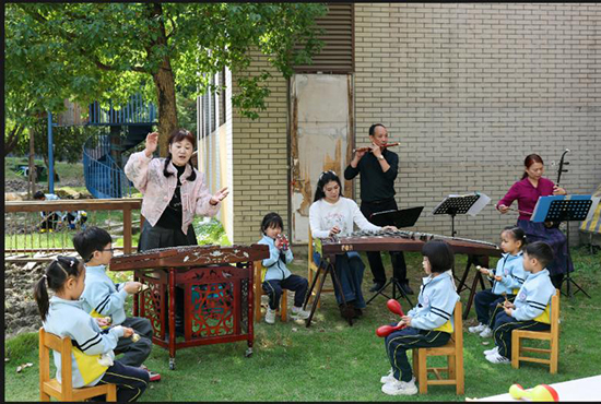 9時(shí)50分,“暖心時(shí)光:共玩道地”環(huán)節(jié)開啟。老年教育學(xué)員們按提前分組,分別前往相應(yīng)班級,與孩子們親切互動(dòng)。初識環(huán)節(jié)中,學(xué)員們主動(dòng)表達(dá)需求,孩子們禮貌回應(yīng),快速拉近距離;道地共玩時(shí),爺爺奶奶現(xiàn)場展示越劇演唱、樂器演奏、太極功夫扇等拿手本領(lǐng),孩子們好奇體驗(yàn),還熱情邀請長輩參與民間游戲,歡聲笑語不斷;活動(dòng)尾聲,孩子們將提前準(zhǔn)備的禮物送給爺爺奶奶,附上真摯的節(jié)日祝福;學(xué)員們則為孩子佩戴重陽節(jié)特制徽章,小小的徽章承載著跨代情誼,為活動(dòng)畫上圓滿句號。
