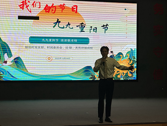 10月29日重陽佳節(jié),天荒坪鎮(zhèn)銀坑村文化禮堂燈火通明,由安吉社區(qū)教育學(xué)院天荒坪分院(天荒坪成校)與銀坑村委聯(lián)合主辦的“九九重陽節(jié) 濃濃敬老情”主題晚會(huì)溫情上演。近百名村民齊聚一堂,其中老年葫蘆絲班與歌詠班學(xué)員以精湛才藝獻(xiàn)禮重陽,展現(xiàn)新時(shí)代老年人積極向上的精神風(fēng)貌。
