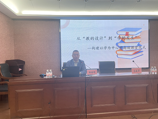 吳興區(qū)初中社會法治教研員楊繼明老師以《從“教的設(shè)計”到“學(xué)的發(fā)生”——構(gòu)建以學(xué)為中心的高效課堂》為題,為參訓(xùn)教師提供了一場豐富、深入淺出的講座。楊老師指出教師身份需要從“講師”向“導(dǎo)師”升級,需要壓縮教師的講授時間,擴(kuò)展自主探究的時間,拓展協(xié)作學(xué)習(xí)的空間,提倡教與學(xué)雙向賦能。他強(qiáng)調(diào)教師轉(zhuǎn)變角色的關(guān)鍵是適應(yīng)學(xué)生的發(fā)展需求、推動教學(xué)理念更新,才能獲得良好的教學(xué)反饋和教學(xué)質(zhì)量的提升。