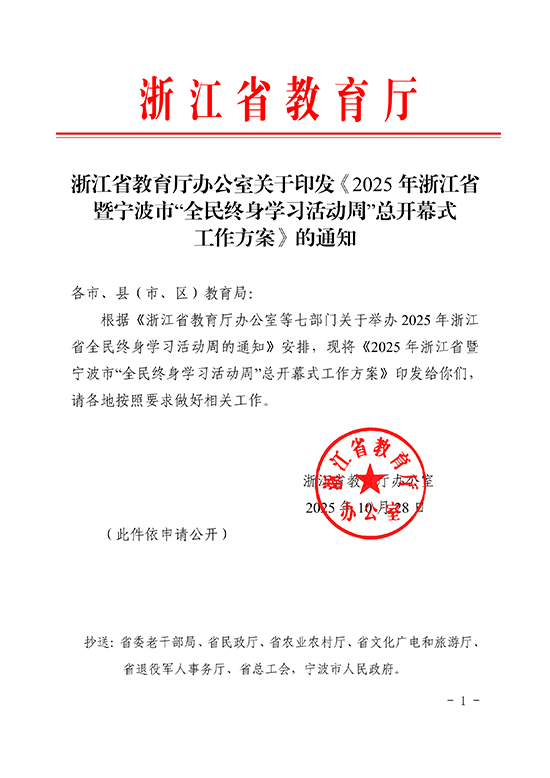 浙江省教育廳辦公室關(guān)于印發(fā)《2025年浙江省暨寧波市“全民終身學(xué)習(xí)活動周”總開幕式工作方案》的通知.pdf