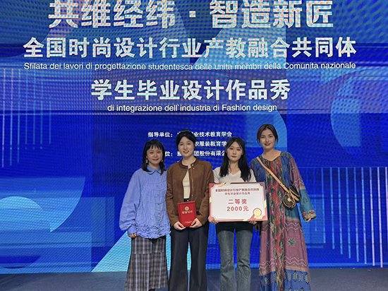 在全國(guó)時(shí)尚設(shè)計(jì)行業(yè)產(chǎn)教融合共同體成員單位的學(xué)生設(shè)計(jì)作品秀中,精彩不斷,來(lái)自全國(guó)十余所院校及意大利時(shí)尚學(xué)院的23組系列作品線上線下聯(lián)袂亮相。浙江省湖州藝術(shù)與設(shè)計(jì)學(xué)校學(xué)生設(shè)計(jì)的童裝系列《漢堡小熊》在眾多來(lái)自全國(guó)十余所本科院校、高職院校以及意大利時(shí)尚學(xué)院的作品中脫穎而出,榮獲二等獎(jiǎng)。此次獲獎(jiǎng)充分彰顯了學(xué)校服裝專業(yè)在產(chǎn)教融合實(shí)踐中的教學(xué)成果與育人實(shí)效。