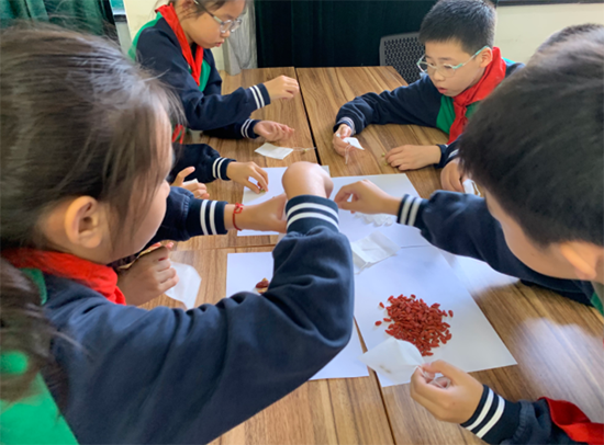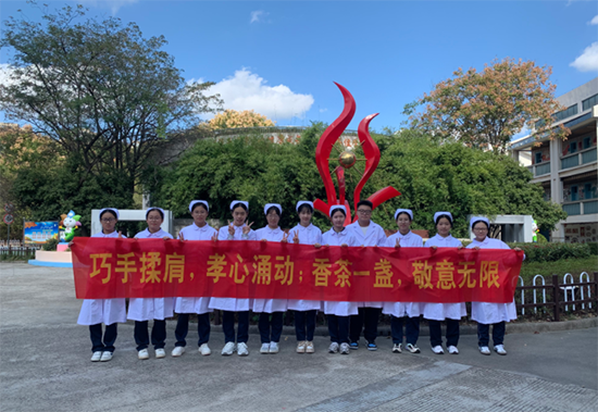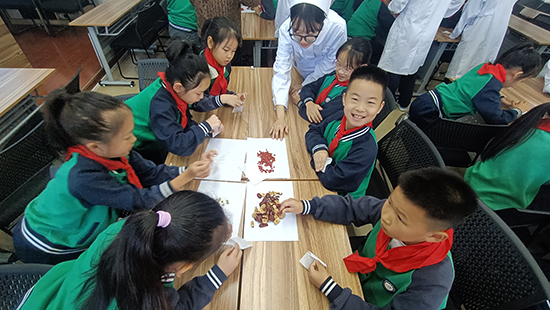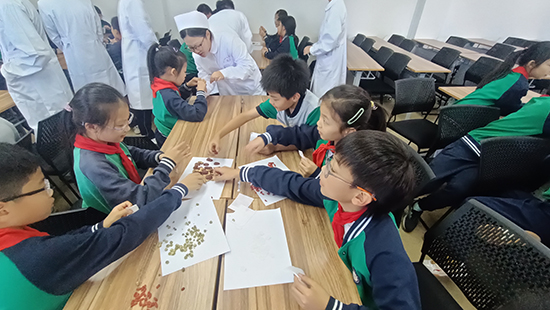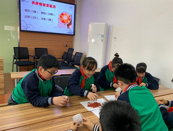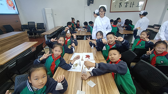 養(yǎng)生茶體驗(yàn)環(huán)節(jié)更是氣氛熱烈。2506班的同學(xué)們準(zhǔn)備了菊花、枸杞、紅棗等藥材,手把手教小學(xué)生們配制“養(yǎng)肝明目茶”。在一片歡聲笑語中,一杯杯暖心的養(yǎng)生茶氤氳著藥香,更傳遞著濃濃的敬老情誼。