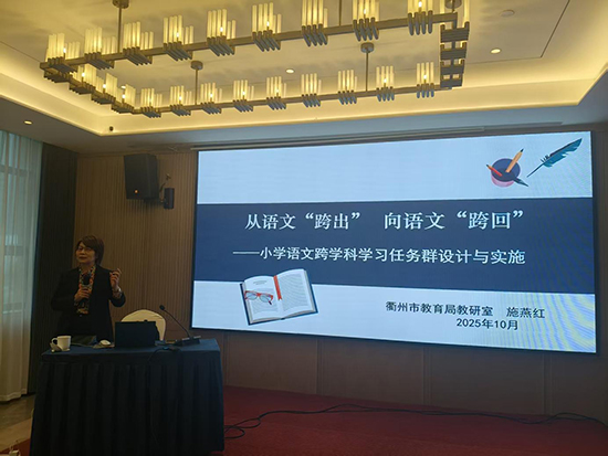 柯城區(qū)鹿鳴學(xué)校書記、校長鄭美宏以《中小學(xué)科創(chuàng)發(fā)展的鹿鳴實(shí)踐:從理念到行動的全面革新》為題,分享了學(xué)校短期激發(fā)學(xué)生科學(xué)興趣、長期培養(yǎng)基礎(chǔ)能力,構(gòu)建“空間+三級課程+項(xiàng)目驅(qū)動+評價(jià)閉環(huán)”科創(chuàng)教育立體網(wǎng)的完整實(shí)踐。衢州市教育事業(yè)發(fā)展中心王榮明作了題為《人工智能背景下的智慧校園建設(shè)與應(yīng)用》的分享。他指出生成式AI有內(nèi)容生成、多模態(tài)等特點(diǎn),賦能教育需依托數(shù)據(jù)、算法、算力三要素,還明確AI可替代部分重復(fù)勞動,但無法取代教師的“溫度、互動、陪伴、引導(dǎo)”——教師仍是學(xué)生心理健康的守護(hù)者與成長引路人。衢州市教育局教研室副主任徐宏武圍繞《核心素養(yǎng)導(dǎo)向下作業(yè)設(shè)計(jì)的思考與實(shí)踐》主題展開分享,提出“無目標(biāo)不設(shè)計(jì)”等核心素養(yǎng)導(dǎo)向的作業(yè)設(shè)計(jì)“六大原則”。他借鑒學(xué)者觀點(diǎn),強(qiáng)調(diào)作業(yè)“重質(zhì)輕量、承認(rèn)差異”需分層,通過四類作業(yè)構(gòu)建協(xié)同育人橋梁,讓作業(yè)成為“思維成長階梯”而非“負(fù)擔(dān)”。衢州市教育局教研室小學(xué)語文教研員施燕紅聚焦小學(xué)語文跨學(xué)科教學(xué)要點(diǎn),作了主題為《從語文“跨出”向語文“跨回”——小學(xué)語文跨學(xué)科學(xué)習(xí)任務(wù)群設(shè)計(jì)與實(shí)施》的分享。講座兼具理論與實(shí)踐,立足語文本質(zhì)、融合多領(lǐng)域資源,還借案例拆解方法,助教師突破學(xué)科邊界,為落實(shí)學(xué)生核心素養(yǎng)提供清晰路徑。