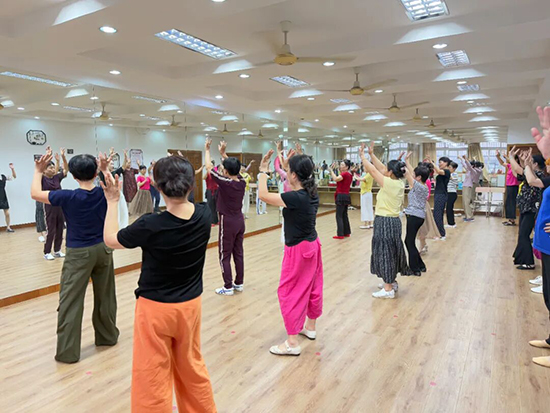 每周二下午,曙光社區(qū)舞蹈教室內(nèi)活力滿滿。在專業(yè)老師指導(dǎo)下,28名學(xué)員神情專注:抬手、轉(zhuǎn)身、踏步,從基礎(chǔ)手位到連貫舞步,跟著口令反復(fù)打磨每一個動作,汗水與笑容交織,舞蹈室里滿是對藝術(shù)的熱愛。這里不僅是學(xué)舞的課堂,更成了居民拉家常、結(jié)友誼的“溫馨驛站”,陌生鄰里因共跳一支舞漸漸熟絡(luò)。