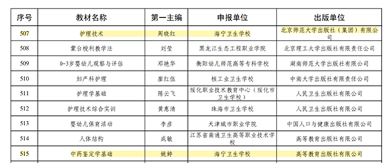 近日,教育部公示第二批“十四五”職業(yè)教育國家規(guī)劃教材遴選結果,海寧衛(wèi)生學校周曉紅老師主編的《護理技術》、姚婷老師主編的《中藥鑒定學基礎》兩部教材憑借鮮明的職教特色、扎實的內(nèi)容質量和突出的育人價值成功入選,這是學校在職業(yè)教育教材建設領域的又一里程碑式成果,為學校職業(yè)教育高質量發(fā)展再添濃墨重彩的一筆!